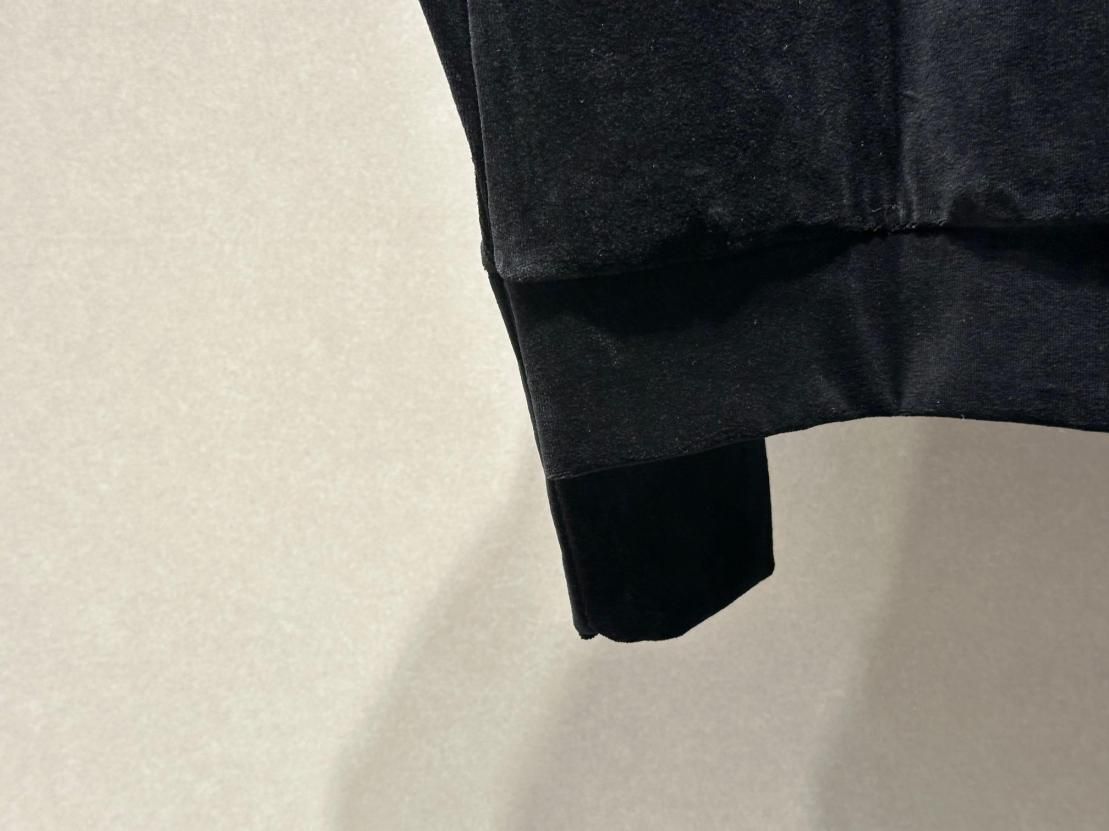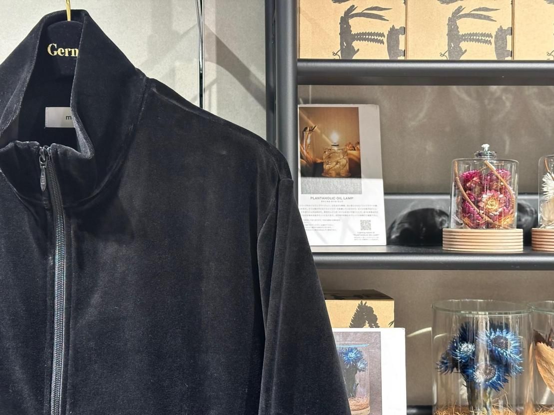 一般的にはスウェットやフリース素材で仕立てられることが多いなか、ベロアを用いることで、カジュアルさの中に上品さが漂います。