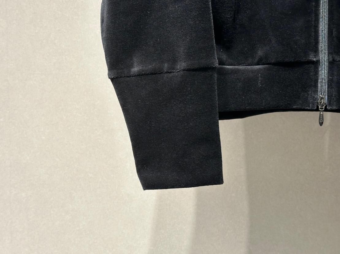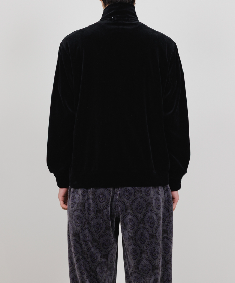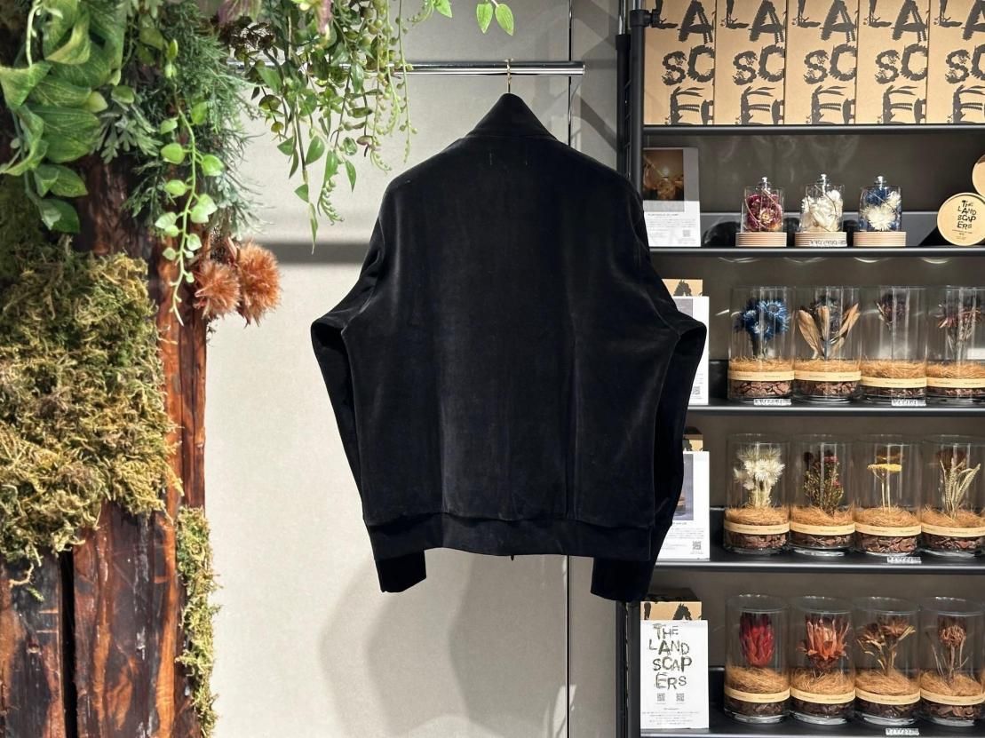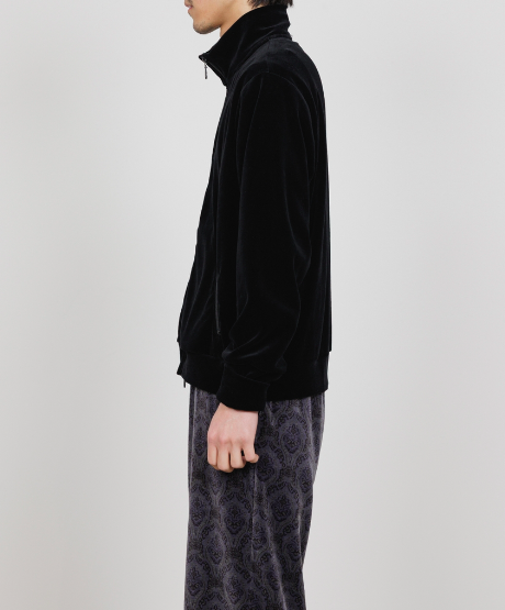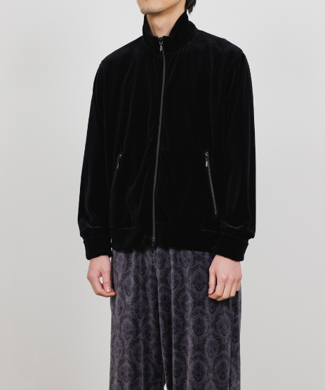 ベロアの持つ光沢感を引き立てるため、装飾をそぎ落としたシンプルな「Track Jacket」。