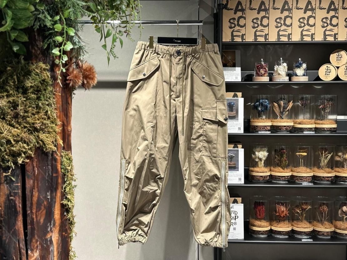 ミリタリーパンツのベースにブルゾン同様、縦に長いジップ、ホワイトテープがついてます。