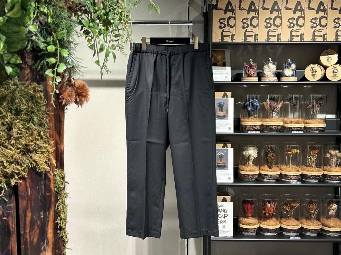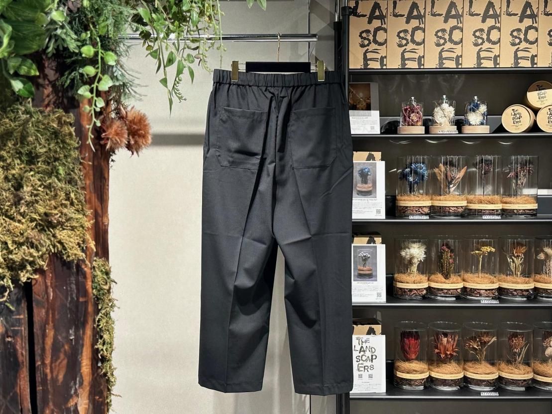 本来の TROUSERS の堅苦しい印象を D+E+K のフィルターを通して、ウエストはシャーリングのスピンドル仕様。
