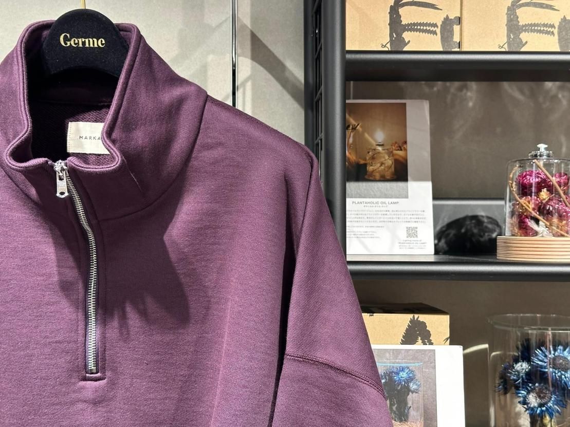 【MARKAWARE】SHORT QUARTER ZIP PULL OVER -ORGANIC COTTON HEAVY FLEECE- (D.PURPLE)