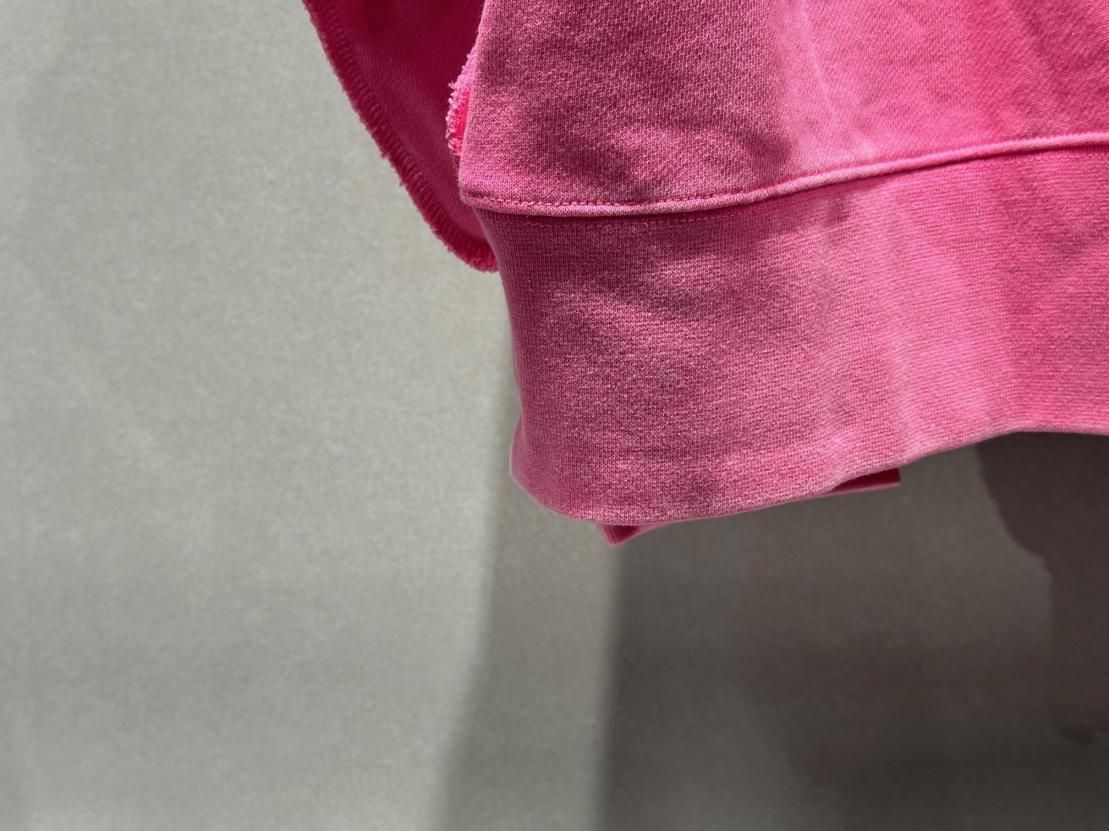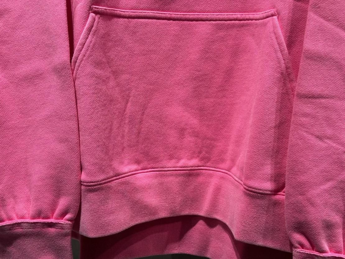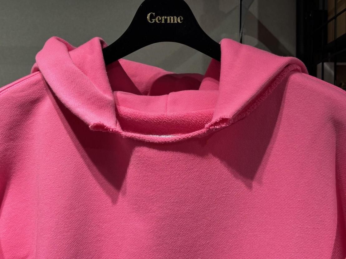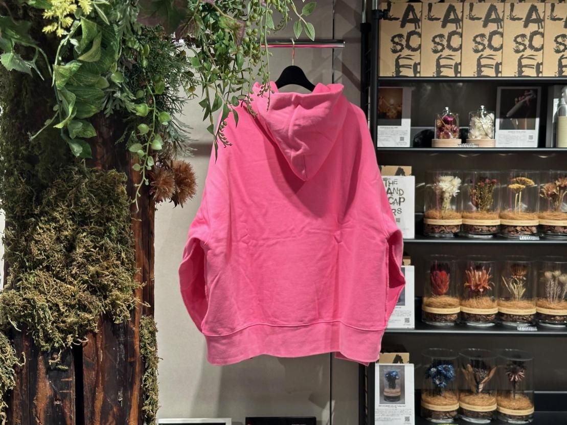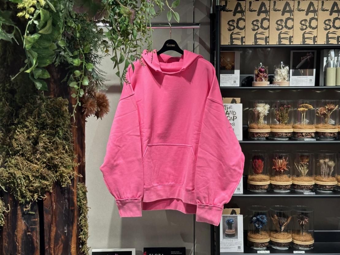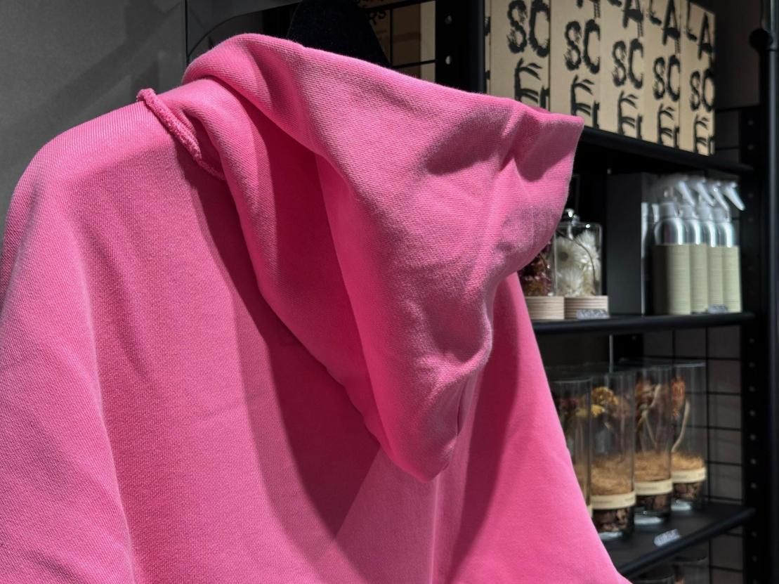 ヴィンテージウェアに見られる後付けフードのディテールを取り入れつつ、ネックは裁ち切りで仕上げ、絶妙な開き具合とアクセントをプラスしました。さらに、バイオ加工を施すことで、着込んだような風合いとうっすらとしたフェード感を表現。